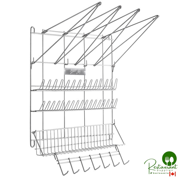 Made of durable stainless steel, this rack boasts a construction built to be a lasting addition to any operation. Use it for drying, organization, or storage. The rack features a variety of hooks and hangers to store a wide array of pastry tips and bags, ensuring your kitchen stays organized and efficient.