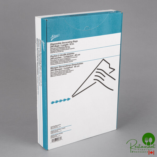 Thanks to its flexible .0045" polyethylene material, this bag makes for efficient filling of both hot and cold foods, but it won't stretch or balloon when piping thick frosting through the small tube openings. Its easy-to-grip material will help you streamline your operation and create professional looking desserts. Plus, it's clear for easy product identification.