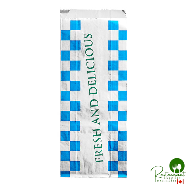Premium printed foil meal bags designed for submarines, hoagies, sandwiches, and complete meals. Featuring vibrant multicolor "Fresh and Delicious" design, insulated foil construction, and generous 2" gusset for fast service operations.