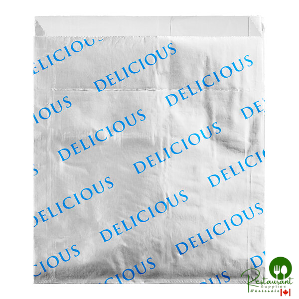The eye-catching "Delicious" printed design enhances brand appeal while the insulated foil material provides superior protection for your handheld menu items. Perfect for restaurants, food trucks, and to-go stations seeking reliable, cost-effective packaging solutions that maintain food quality during transport.