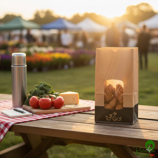 This Bagcraft EcoCraft printed to-go vented meal bag combines style with functionality. Featuring a tamper-evident seal, anti-fog window, and ventilated design, it's perfect for restaurants, to-go stations, and food trucks seeking to maintain food freshness while boosting visual appeal.