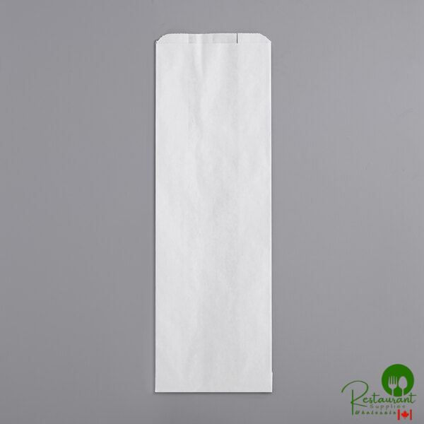 This Bagcraft Packaging 300167 6" x 3 1/2" x 18" white bread bag protects your freshly baked loaves in style! Perfect for serving freshly baked baguettes, this bag features breathable paper that keeps crusts crispy while maintaining a clean, professional appearance.
