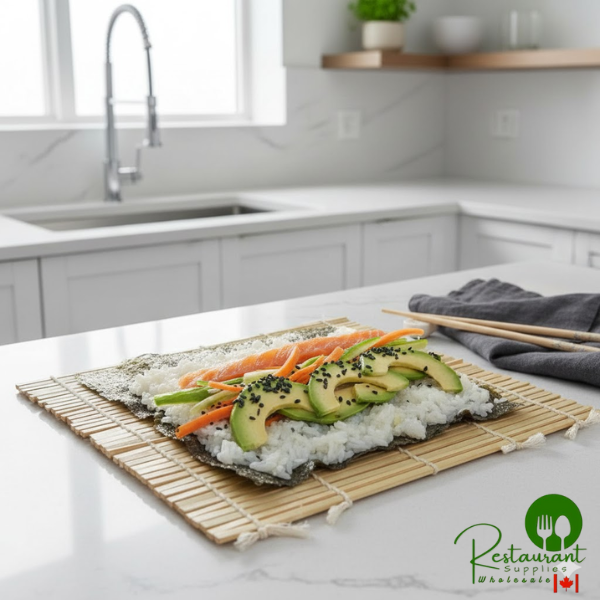 Sheet Specifications: 7" length × 8" width. Perforated for easy tearing into standard sushi roll strips. Consistent quality for professional sushi presentation.