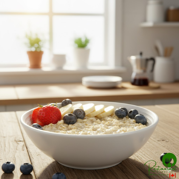 Ready in just 10 minutes on stovetop or 2 minutes in microwave! Simply use 2 parts water to 1 part oats with a pinch of salt. Perfect for fast breakfast service in busy establishments.