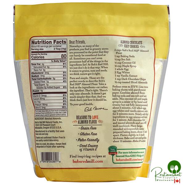 Create classic baked treats and gluten-free delights alike with this Bob's Red Mill super-fine blanched almond flour! This flour is made exclusively from California-grown almonds that are skinned and blanched, then ground into a fine powder - no other ingredients or additives needed. It's produced in Bob's Red Mill's gluten-free facility, where each batch undergoes rigorous testing to ensure that it is not contaminated with gluten, so you can confidently serve culinary creations that are made with this flour to your customers with celiac disease, wheat allergies, and gluten sensitivities. This almond flour has a fine, even consistency and lends a delightfully rich, nutty, buttery flavor and an indulgently moist texture to your baked creations!