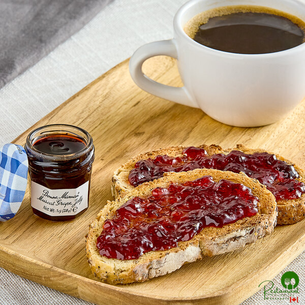 Add a premium offering to your establishment with this Bonne Maman 1 oz. Muscat grape jelly! Unlike most grape jellies, which are made with Concord grapes, this product is created with Muscat grapes, which have a deeper flavor and require less added sugar to achieve great taste.