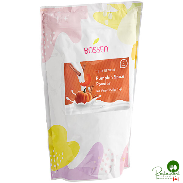 This Bossen all-in-one pumpkin spice powder mix is stored in a convenient 2.2 lb. bag that features a resealable top to lock in the product's freshness. This product is shelf stable, making storage simple and saving valuable refrigerated space. Best of all, each bag makes approximately (16) 16 fl. oz. prepared milk tea beverages to offer an ample supply for your busy establishment!