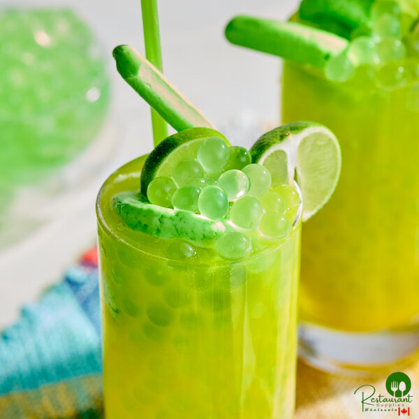 This versatile boba can be served with bubble tea and is also a great addition to fruit teas, iced teas, smoothies, slushies, and even cocktails. Try displaying this boba at your frozen yogurt bar or trendy ice cream parlor. Their vibrant green color and 10 mm diameter make for a visually appealing garnish that customers will rave about.