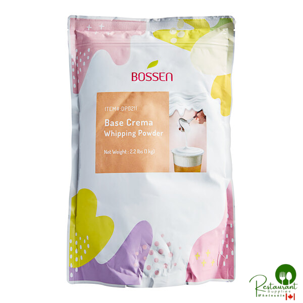 Add creamy, silky smooth texture and rich flavor to your beverages and desserts with this Bossen crema whipping powder mix! After preparation, this thick, foamy topping is a perfect way to enhance bubble tea, fruit drinks, or desserts. Its fluffy, white appearance makes it look like a dab of "cloud" atop your signature beverages and menu items!