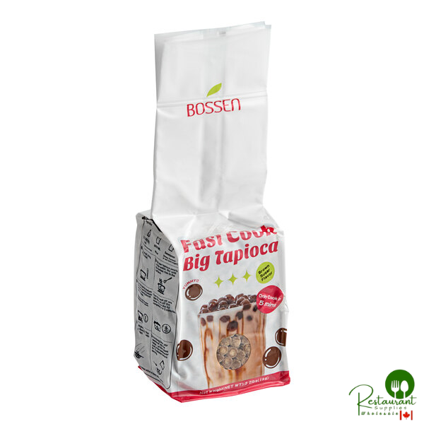 Create delicious bubble tea in a fraction of the time with these Bossen fast cook big tapioca boba pearls! This product closely resembles Bossen's classic large tapioca pearls in its raw form, but cooks into cube shapes for a distinctive addition to your beverages. Best of all, these fast cook pearls are ready in a fraction of the time it takes to cook standard tapioca pearls.