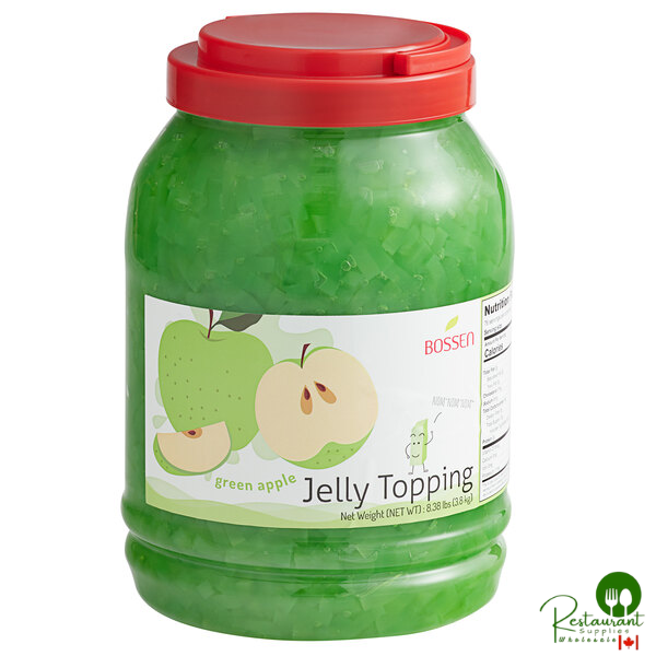 This Bossen green apple jelly topping offers an easy way to add tantalizing texture to your signature beverages or desserts! Bursting with sweet, tart green apple flavor, this product is made of nata de coco (natural coconut gel) and consists of soft, jelly-like morsels that are sweetened with syrup.