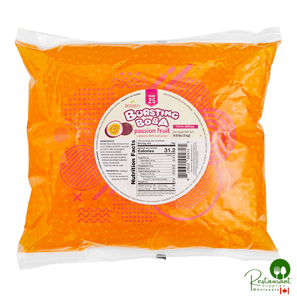 With this Bossen Pure25 passion fruit bursting boba, creating trendy bubble teas and other delicious beverages has never been easier! This caffeine-free and vegetarian boba is made in traditional Taiwanese style, and it's filled with a fresh, tropical passion fruit flavor!