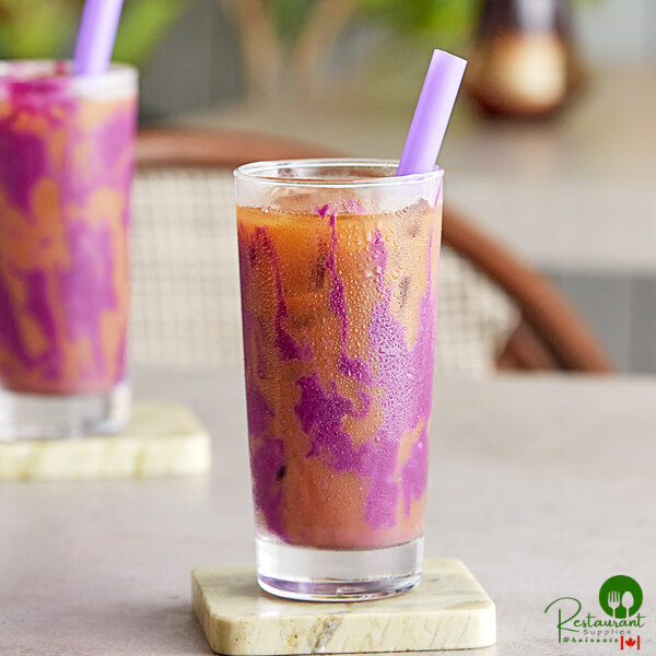 Create trendy, eye-catching beverages with this Bossen sweet potato tiger powder mix! Made with powdered sweet potato, this powder offers an irresistible sweet potato flavor and a gorgeous purple color. Thicker and stickier than most powdered mixes, prepared tiger powder mix is perfect for coating the outside of your cups before you add boba, syrup, and milk tea to create the delicious and popular beverage known as tiger milk tea. This boba beverage is so delicious and beautiful that your guests won't be able to resist snapping a picture!