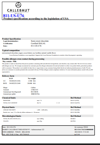 If you're searching for a chocolate that can handle a variety of applications with optimal performance in taste, color, consistency, and gloss, then look no further than these Restaurant Supply Wholesale Canada Recipe 811 chocolate Callets! These premium dark chocolate Callets feature a full-bodied, roasted cocoa flavor up front that follows with notes of banana, red fruit, and a subtle caramel and vanilla finish. The chocolate's roasted notes, acidity, bitterness, and sweetness all blend together perfectly to deliver a complete, balanced, and consistent flavor profile that ensures the chocolate's taste will work across different applications and with a wider range of flavors and ingredients. Because they feature a medium fluidity for all-around application, these Callets can be used for virtually all of your chocolate work from confectionaries, desserts, and baked goods to ice cream and gelato. While the flavor pairings are truly endless, the chocolate pairs exceptionally well with sweet flavors like vanilla and caramel, fruity flavors like apricot and orange, spiced flavors like cardamom and anise, and even liqueurs.