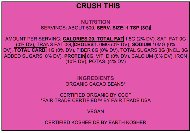 Not only are these chocolate nibs incredibly delicious, but they are also plant based, vegan, and made with certified organic and fair trade certified ingredients, so you can feel good about enjoying this delicious treat while supporting sustainable practices. With their versatile nature, these cacao nibs are perfect for a variety of uses. Sprinkle them on top of gooey brownies or blend them into a creamy ice cream base for a rich and indulgent treat. Use them as a garnish on cakes or mix them into your favorite beverages for an added layer of flavor. It is not recommended to store your chocolate in the refrigerator or freezer; rather, keep it in a cool, dry place between 50 to 70 degrees Fahrenheit.