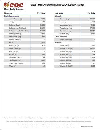 Add delicious chocolate flavor to your signature desserts with these Restaurant Supply Wholesale Canada white chocolate chips! With a size of 1M, meaning there are 1000 chocolate chips per lb., these are standard sized chocolate chips. Perfectly-sized for incorporating into a variety of breakfast items, pastries, and batters, these white chocolate chips can add a rich, sweet bite to almost any sweet indulgence in your establishment.