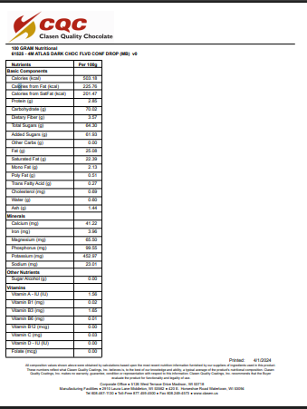 Create one-of-a-kind dipped treats and confections with these Restaurant Supply Wholesale Canada dark chocolate flavored confectionary drops! With a size of 4M, meaning there are 4000 drops per lb., these are smaller than standard sized chocolate chips. For a similar taste and texture to dark chocolate without the hassle of tempering, these confectionary drops melt to a smooth, viscous consistency that makes dipping, drizzling, and molding simple and easy. To prepare, all you have to do is gently heat the drops, stirring until they are completely melted and reach 120 degrees Fahrenheit, dip your products, then allow them to set in the refrigerator. Plus, the classic dark chocolate color adds a beautiful deep brown touch to your desserts.