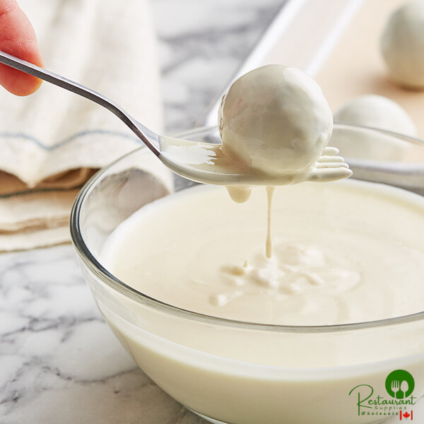 Simply melt the compound coating to the recommended temperature and use immediately for coating, dipping, or drizzling. The coating will set to a semi-firm consistency with a beautiful semi-gloss finish.
