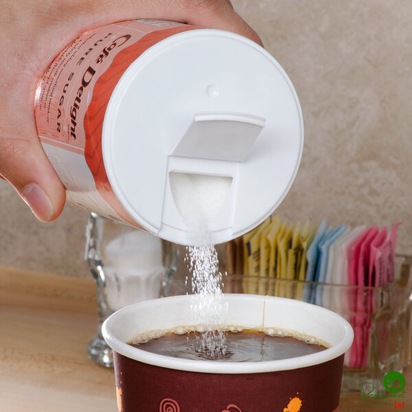 Reduce waste from individual sugar packets and stock your kitchen with this Cafe Delight 20 oz. sugar canister for all of your sweetening needs! Use it any time you want to add an extra pinch of sweetness to your coffees, teas, breakfast cereals, fresh fruit, and more.