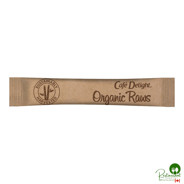 Offer a high-quality beverage sweetener in a natural, organic form with this Cafe Delight organic raw turbinado sugar packet! This sugar is partially refined, meaning it retains some of the natural molasses from the sugar cane, which gives it a light brown color, slightly coarse texture, and faint caramel flavor. The sustainably harvested, raw organic turbinado sugar is minimally processed, and its wrapper is made with 46% less paper than a standard sugar packet, contributing to reduced paper waste and saving on storage space. Use it any time you want to add an extra pinch of sweetness to your coffees, teas, breakfast cereals, or fresh fruit.