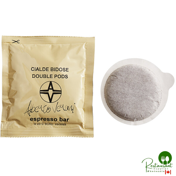 Quickly and easily deliver cup after cup of rich, aromatic Italian espresso with these Caffe Verani imported Italian double-shot espresso pods. Made from Arabica and Robusta coffee beans that are finely ground, this extra dark roast delivers a robust, full-bodied flavor with a beautiful, long-lasting crema. Because espresso is a concentrated form of coffee, it is important to note that it has a stronger, bolder flavor, a thicker, velvety consistency, and a higher concentration of caffeine than regular brewed coffee.
