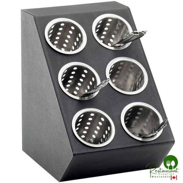 Enhance your flatware displays without sacrificing style with this sleek, vertically designed Cal-Mil Classic silverware display. Its eye-catching black base features room for six metal or melamine cups to organize forks, knives, spoons, and other necessary flatware.