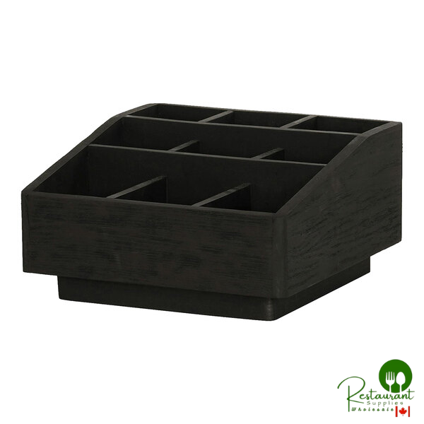 Keep condiments, utensils, or coffee supplies neatly organized with the Cal-Mil Brooklyn black wood 9-section condiment organizer. Crafted from durable wood, this organizer is built to withstand busy environments. The modern recessed design adds sophistication to snack bars or break rooms, making it both stylish and functional.