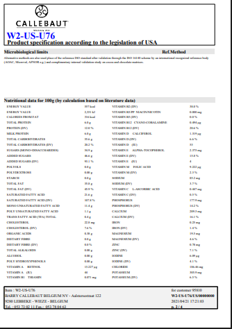 To achieve its perfectly balanced taste, this chocolate is made with a blend of cocoa beans from Ivory Coast, Ghana, and Ecuador. Once the beans have been properly fermented, sun-dried, and selected, they are shipped to Restaurant Supply Wholesale Canada's state-of-the-art facility to undergo quality checks and begin the lengthy process of becoming chocolate. First the beans undergo whole bean roasting, which means they are roasted in the shell. This helps to preserve and develop the delicate flavors and aromas of the cocoa beans. After roasting, the cocoa nibs are separated from the shell and then ground into a fine cocoa liquor, where it is then mixed with premium ingredients, including milk from cows grazing on Belgian pastures and sugar from locally-grown sugar beets, to create a chocolate dough. Next, the chocolate dough is refined and then conched to develop the dough into a liquid as well as unify and balance the flavors. Lastly, the chocolate is tempered and molded into the Callets™ to be used for endless possibilities!