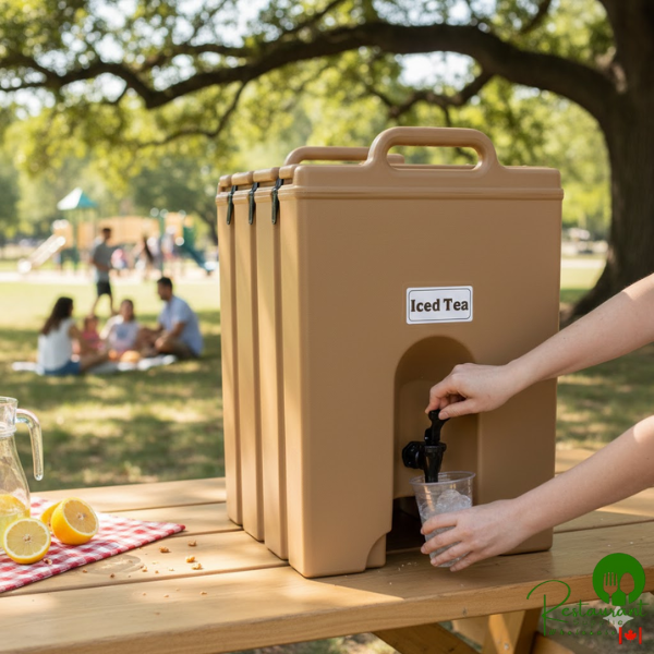 For reliable hot or cold beverage transport and service, this durable Cambro beverage dispenser enhances any beverage service with remarkable ease. Perfect for catered events, concession stands, or banquets. It features convenient carry handles, sturdy lid latches, and interior insulation to maintain serving temperatures for hours.