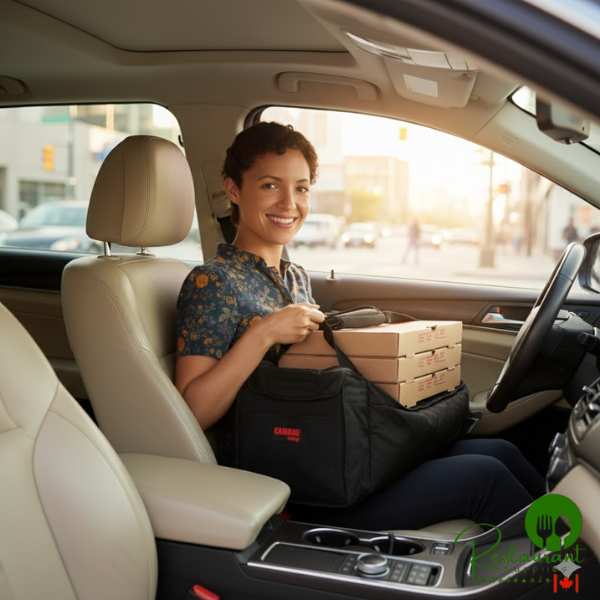Includes ticket pouch for orders and receipts plus multiple pockets for condiments, coupons, and utensils—keeping everything organized during delivery.