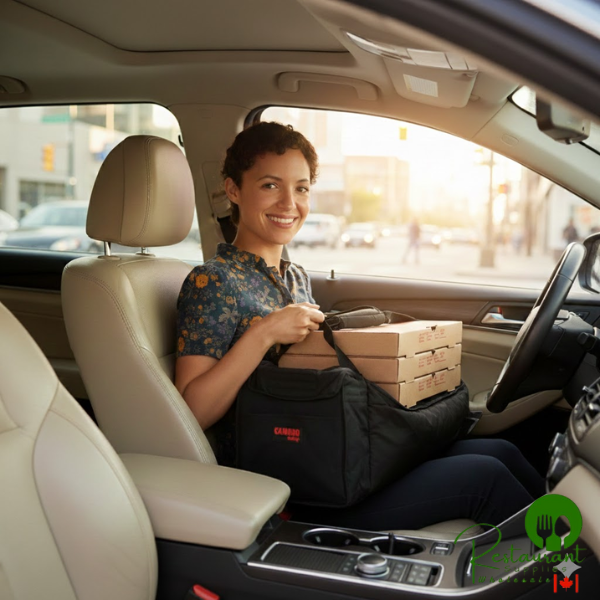 900-denier nylon fabric with 1½" recycled PET insulation provides superior durability and temperature control. Breathable material protects food quality during delivery.