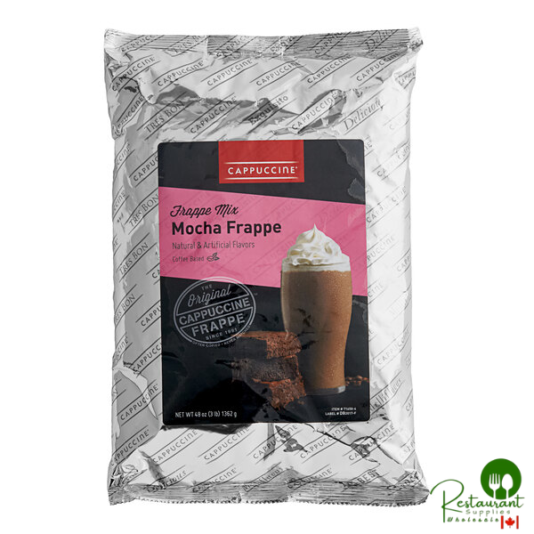 Satisfy your customers' cravings for a sweet and refreshing beverage with this Cappuccine mocha frappe mix! Combining the classic taste of mocha coffee with the creaminess of a frappe, this drink mix allows you to quickly whip up a refreshing glass of luscious frappe.