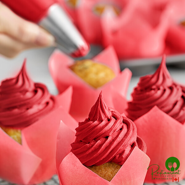 Create eye-catching baked goods with Chefmaster red 20 oz. gel food coloring! This highly concentrated gel formula adds brilliant red color to icing, fondant, batters, and beverages without altering flavor or texture.