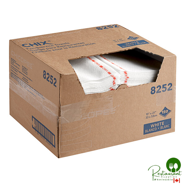 Keep the food-prep areas in your establishment clean with the Chicopee 8252 Chix® white foodservice wiper. These machine-washable wipers ensure properly cleaned work surfaces to maintain sanitary, food-safe environments in restaurants and food service operations.