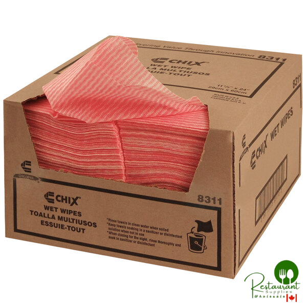Maintain superior cleanliness with the Chicopee 8311 Chix® foodservice wet wiper. Designed for commercial kitchens, bars, and restaurants, this pink standard-duty towel efficiently wipes counters, prep areas, tables, and more.