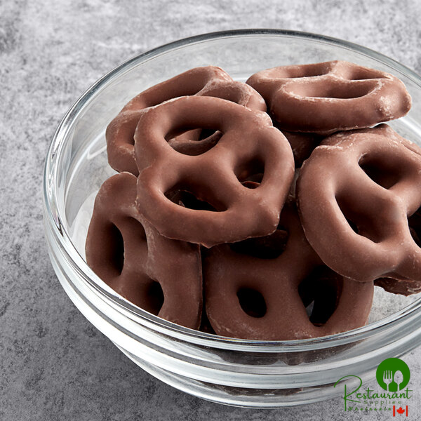 Add a sweet and salty option to your topping bar with these chocolate covered pretzels! Covered in a rich milk chocolate coating, these crunchy pretzels are perfect for enhancing sweet treats with a crunchy, sweet, and salty element. Use them to top ice cream sundaes, frozen yogurt, cakes, or cupcakes. You can even toss them into snack mix or trail mix to add a sweet element to your homemade treats! Whether you're creating decadent ice cream sundaes or other sweet treats, you'll find plenty of uses for this bulk supply of chocolate pretzels.