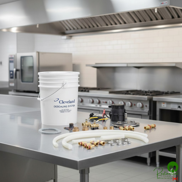 This Cleveland 107142 boiler service kit helps you service select Cleveland equipment. It comes with the components shown inside an empty 5 gallon bucket.