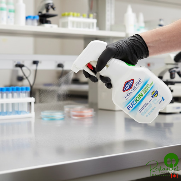 Quickly clean and disinfect a variety of surfaces with this CloroxPro Clorox Healthcare Fuzion cleaner disinfectant spray! This disinfectant uses hypochlorous acid bleach technology to kill more than 60 pathogens when used as directed. Best of all, this low-odor formula is easy on surfaces and won't leave residue behind.