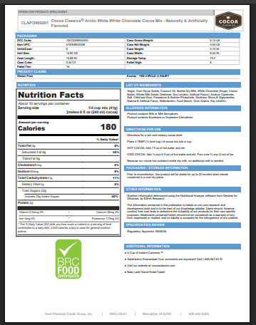 There's nothing quite like wrapping your chilly fingers around a steaming hot mug of freshly made hot cocoa. Invite your patrons to warm up and get cozy with this Restaurant Supply Wholesale Canada arctic white chocolate cocoa mix! This product flips the script on hot chocolate by swapping out traditional milk chocolate for sweet, indulgent, creamy white chocolate. This luscious flavor will satisfy any sweet tooth and its velvety mouthfeel will keep your customers reaching for this hot cocoa again and again! Whether you're looking for a caffeine-free option to add to your hot beverage menu or offering hot cocoa as a warming holiday treat, this Restaurant Supply Wholesale Canada arctic white chocolate cocoa mix is sure to satisfy all your customers' hot chocolate cravings.