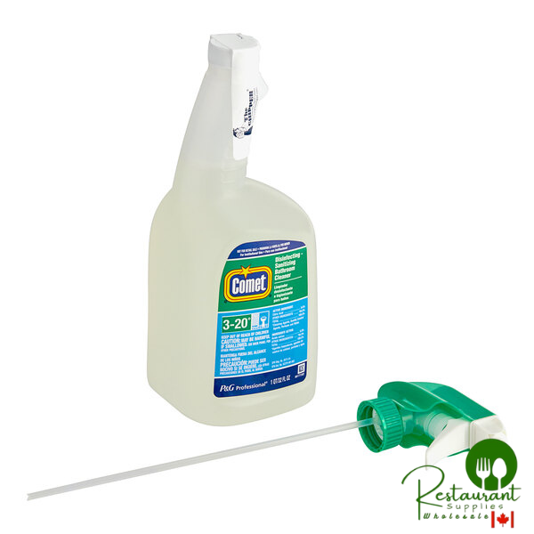 Eliminate tough soap scum and hard water stains to revitalize your bathrooms with the Comet 22569 disinfecting and sanitizing bathroom cleaner ready-to-use with foil seal. This 3-in-1 cleaner combines the power of disinfectant, sanitizer, and deodorizer for a superior clean in just one step.