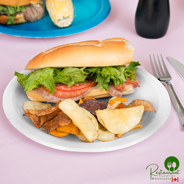 This classic white plate brings sophistication and versatility to any dining setting. The clean, crisp appearance provides the perfect canvas for your culinary presentations and seamlessly complements any event theme.