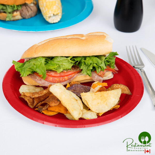 Stylish and sturdy, this paper plate is perfect for serving up salads, pastas, burgers, and much more! Decorate your buffet table or let guests carry these plates around to hold their variety of party favorite foods.