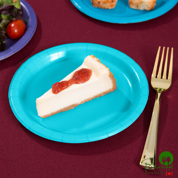 This Creative Converting 791039B 7" Bermuda Blue round paper plate is perfect for your party, buffet, snack bar, or catered event!