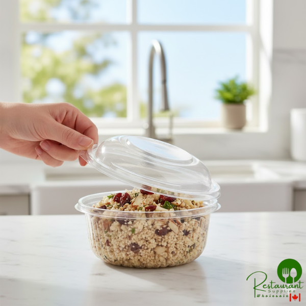 Perfect for portion storage and display presentations in grocery stores, delis, and food service establishments. The exceptional clarity offers superior product visibility to bring out the vivid colors of your menu items, while the domed design tightly seals food inside containers to preserve freshness.