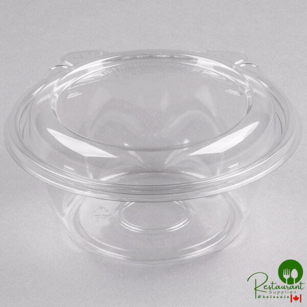 Saving time and money, this hinged bowl eliminates the need to use shrink bands or wrap labels to protect your food. This durable PET plastic bowl is equipped to both alert the customer of possible tampering and keep contents secure during transport. Its 360-degree perimeter seal prevents messy leaks and spills while locking in freshness, making this bowl the perfect to-go vessel for your delicious, sauce-covered foods.