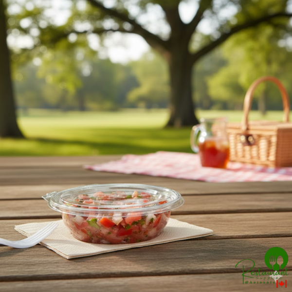 Saving time and money, this hinged bowl eliminates the need to use shrink bands or wrap labels to protect your food. Its durable PET plastic construction is equipped to both alert customers of possible tampering and keep contents secure during transport. The 360° perimeter seal prevents messy leaks and spills while locking in freshness.