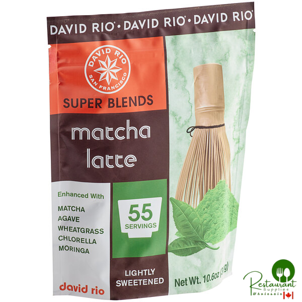 Beautifully balanced, this David Rio super blends matcha latte mix is packed with flavor. Made from caffeinated ceremonial Japanese matcha, this blend is filled with other delicious ingredients, including agave, wheatgrass, chlorella, and moringa.