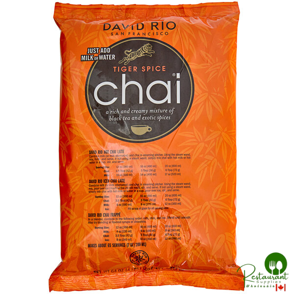 Beautifully balanced, this David Rio Tiger Spice Chai® tea latte mix is packed with flavor. Made from superior caffeinated black tea, this blend is enhanced with the highest-quality chai spices, including cinnamon, cardamom, and clove. Additionally, cane sugar helps sweeten each sip.