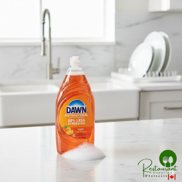 Expertly clean pots, pans, and other dishes with the Dawn 01659 38 oz. ultra antibacterial orange dish soap! This soap is great for use hand washing dishes at your restaurant, bakery, cafe, or concession stand. Enjoy the pleasant orange fragrance that leaves your dishes with a fresh and clean scent.