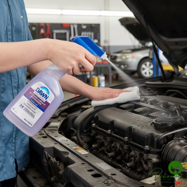 Clean your toughest grease problems with the Dawn Professional 32 oz. kitchen surface degreaser! Avoid cumbersome dilution processes with this ready-to-use product. This degreaser is a heavy-duty solution to cleaning tough areas where grease builds up, like range hoods, fryers, ovens, walls, drive-thru pads, parking lots, and any stainless steel surface.